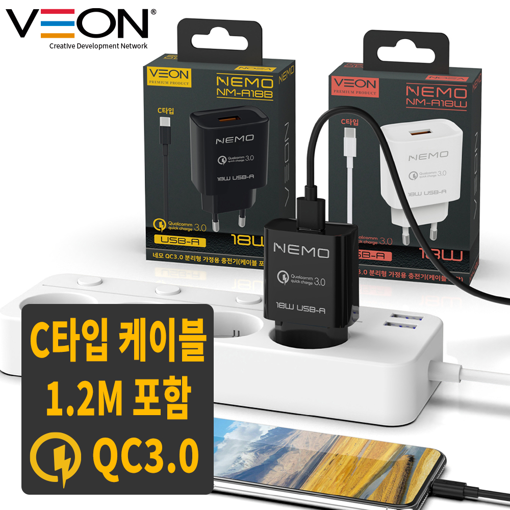 [º£¿Â] ³×¸ð QC3.0 ºÐ¸®Çü °¡Á¤¿ë ÃæÀü±â (CŸÀÔ 1.2M ÄÉÀ̺íÆ÷ÇÔ)
