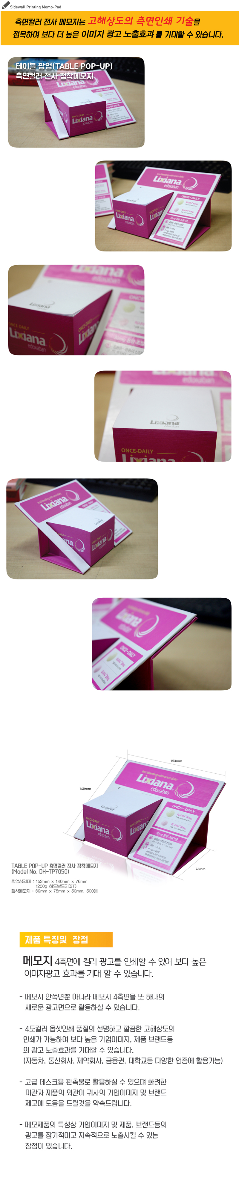 »óǰ¸í Å×ÀÌºí ÆË¾÷ Ãø¸éÄ÷¯ Àü»ç Á¡Âø¸Þ¸ðÁö 69*75mm (500¸Å)