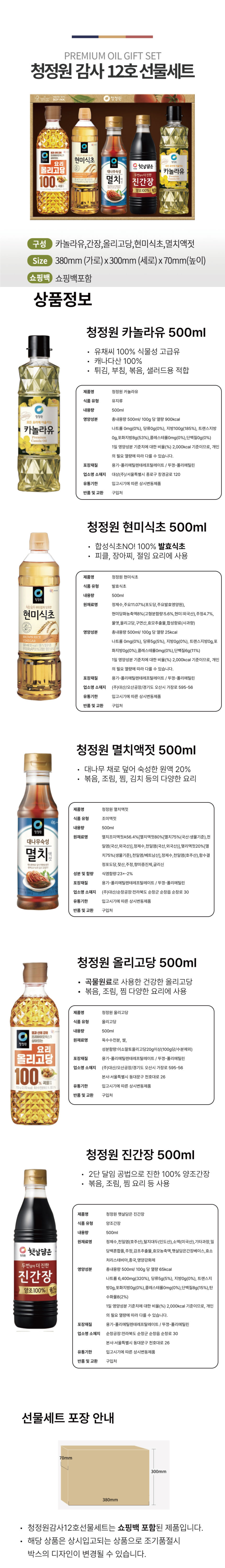 ±¸ ¼º Ä«³î¶óÀ¯500ml + Çö¹Ì½ÄÃÊ500ml + ¸êÄ¡¾×Á£500g + Áø°£Àå500ml + ¿Ã¸®°í´ç700g
