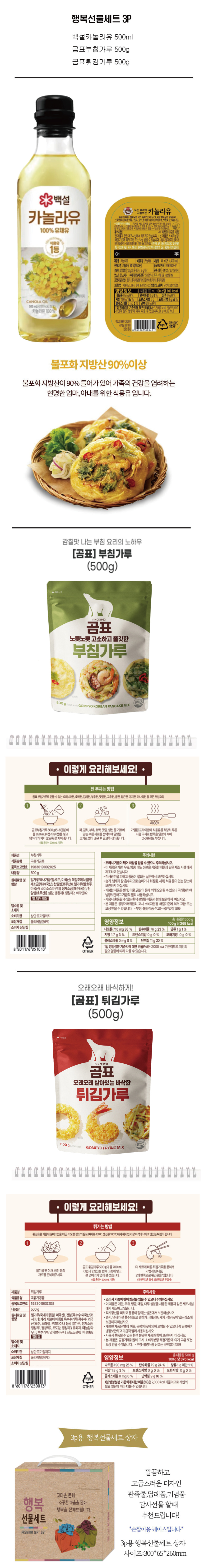 ¹é¼³ Ä«³î¶óÀ¯ 500ml + °õÇ¥ ºÎħ°¡·ç 500g + Æ¢±è°¡·ç 500g